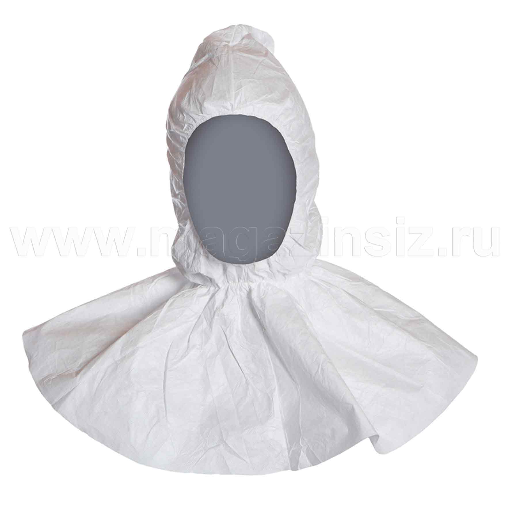 Капюшон DuPont™ Тайвек® модель PH30L0. Капюшон с эластичными вставками по контуру лица и на шее. Цвет: белый. Изготавливается в одном размере.