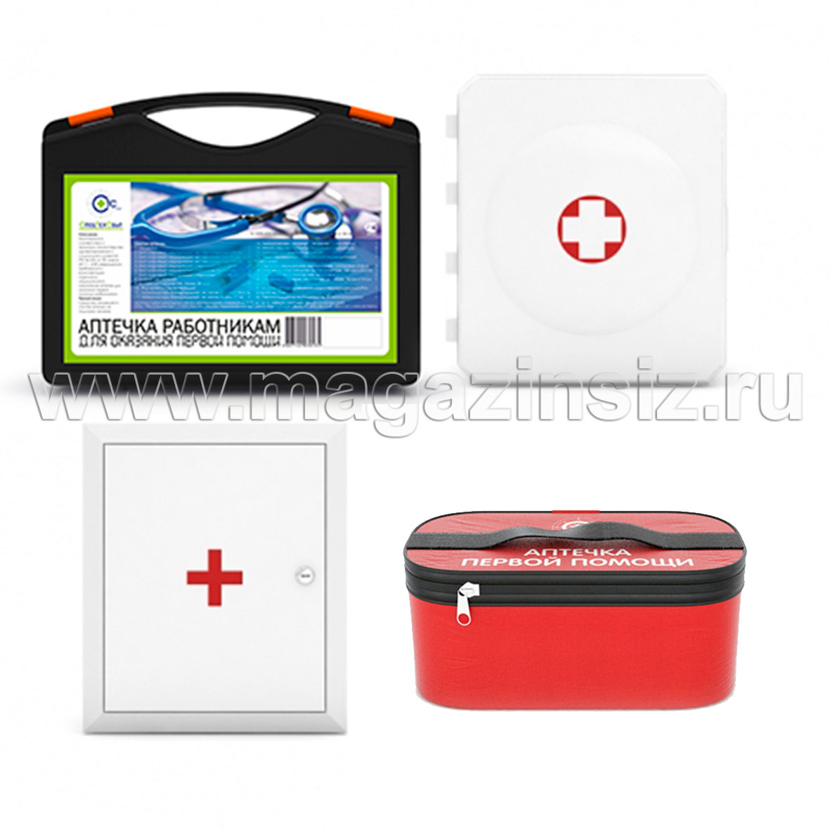 Аптечка для оказания первой помощи работникам соответствует приказу Минздравсоцразвития РФ «Об утверждении требований к комплектации изделиями медицинского назначения аптечек для оказания первой помощи работникам» № 169н от 05.03.2011. Принята к оснащению подразделений организаций, предприятий и учреждений с 01 января 2012 года. Выпускается в четырех исполнениях: в пластиковом чемоданчике, пластиковом и металлическом шкафчике, в сумке.
