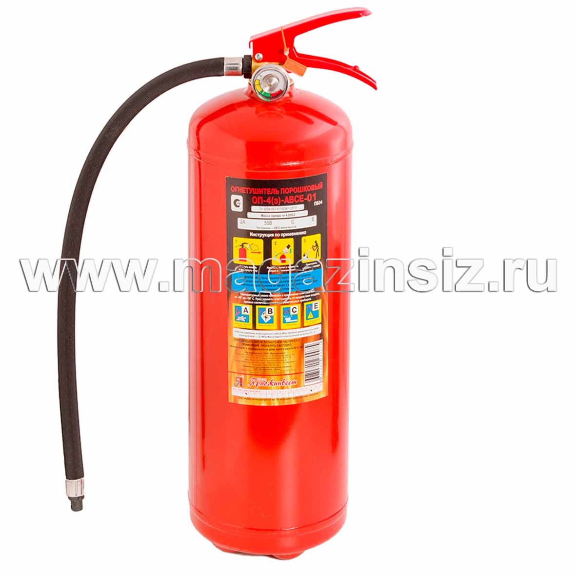 Переносной порошковый огнетушитель ОП-4 для тушения твердых веществ, жидкостей и газов, а также электроустановок под напряжением.
