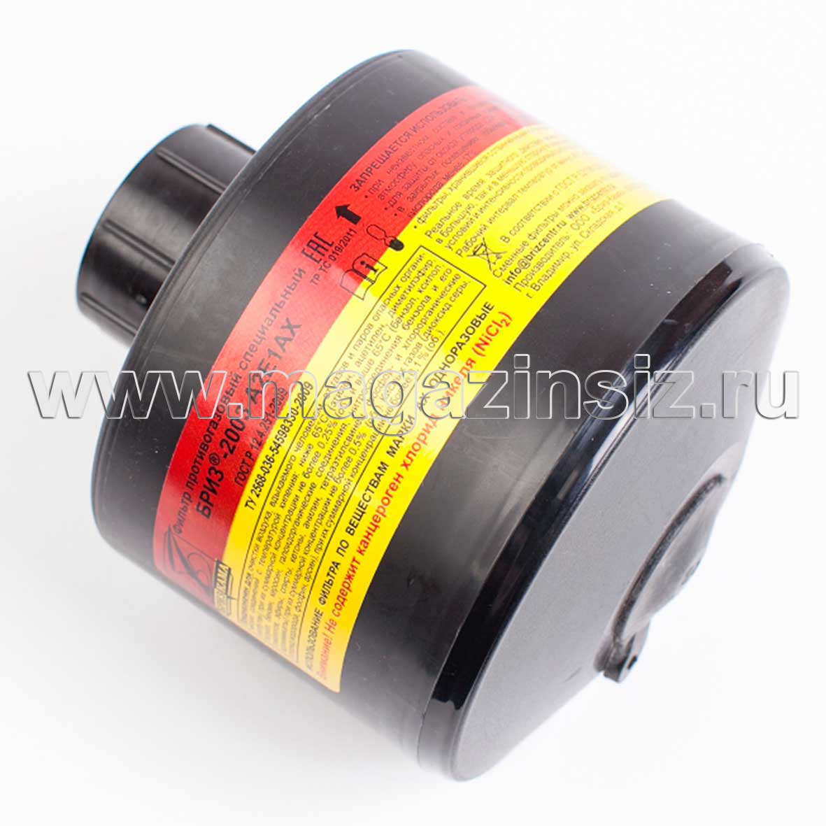 Фильтр Бриз-2003 A2E1AX предназначен для очистки воздуха от паров и газов опасных органических соединений с температурой кипения не более 65°С, паров органических веществ с температурой кипения выше 65°С, а также кислых газов и паров. Используется с лицевыми частями Бриз-4301 и Бриз-4302 в составе промышленных противогазов Бриз-3301.